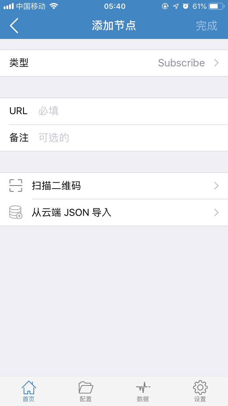 在底部导航栏进入「配置」页面,点击右上角加号。